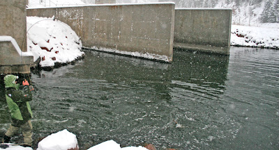 Heading to Gray Reef in early January can be a harrowing experience. Wind chills in the minus degrees, slippery ice along the banks, and when you do hook-up with a fish it can take up to twenty minutes to warm up in the car. Is it worth it?? Aaron and Brooke think so!! Check out the 23 inch rainbow that took Brooke 15 minutes to land....Look out boys there’s a new angler on the scene!!-